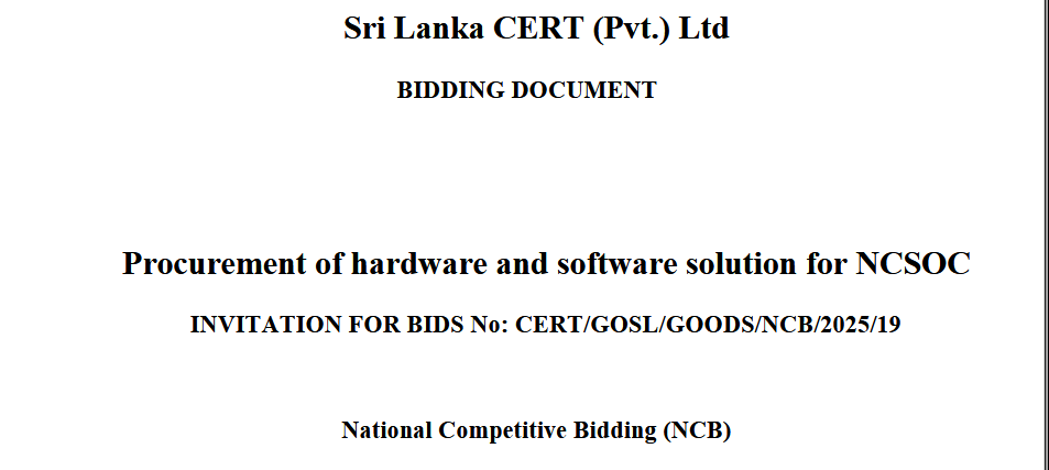 Ongoing Procurements for National Cybersecurity Operations Center.